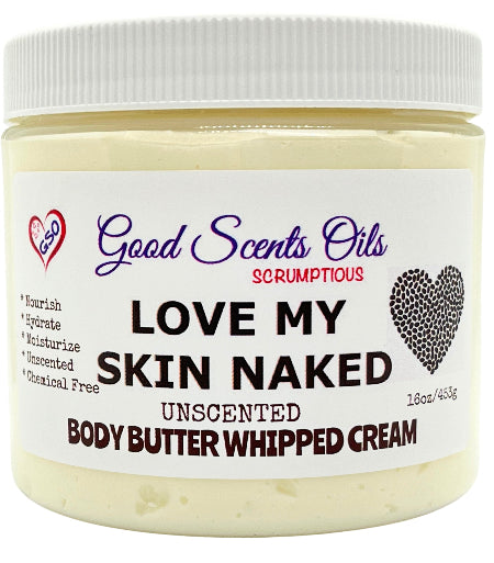 LOVE MY SKIN NAKED Unscented Body Cream is specially formulated for those with sensitive skin or low fragrance tolerance. Its blend of nourishing tree nut butters and oils, combined with vitamin E and water, deeply hydrates without irritation. Apply generously to wet or damp skin to enhance absorption through open pores.